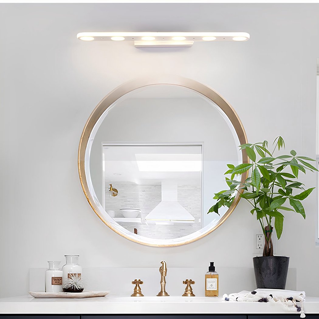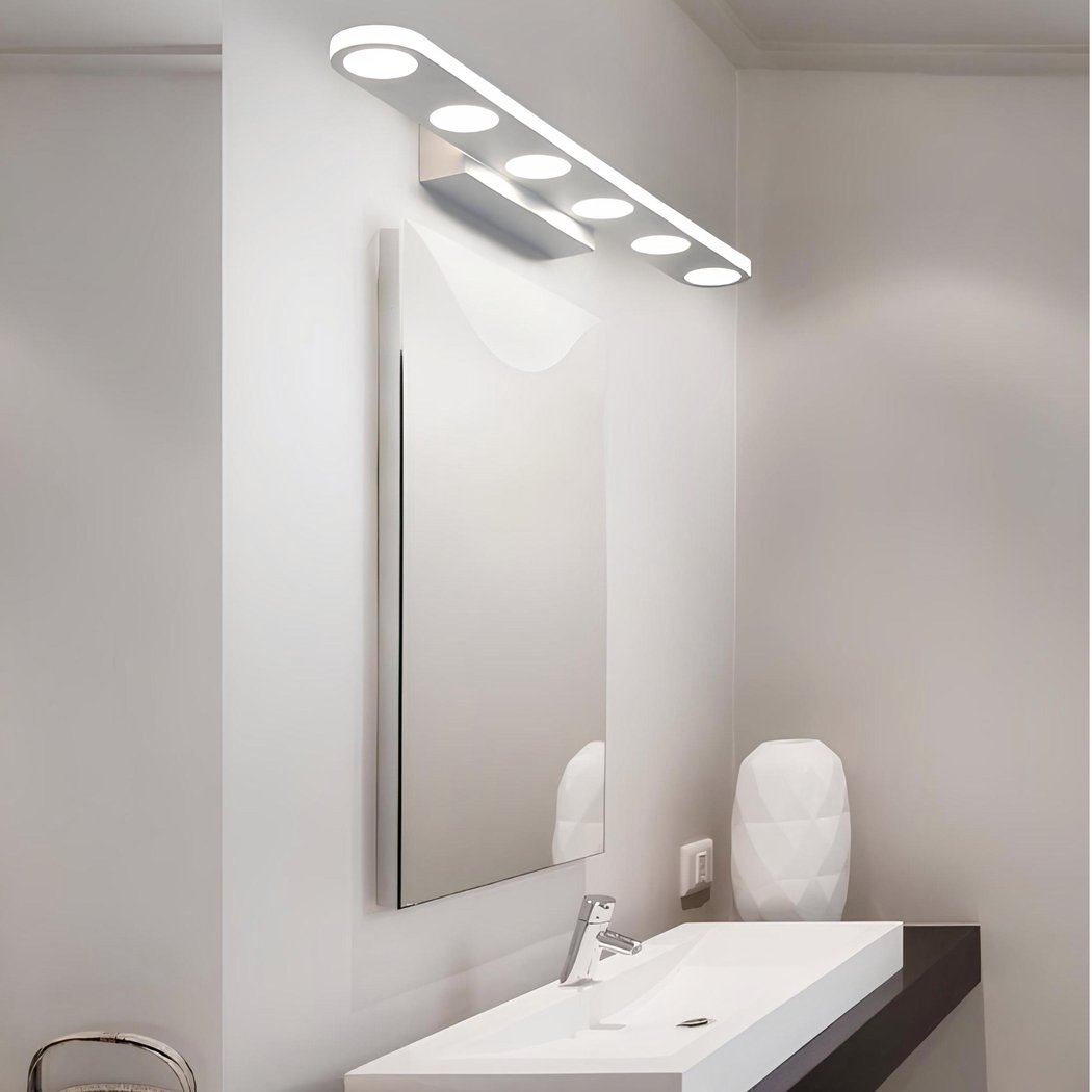 Met 4 of 6 ronde lampen, afhankelijk van de lengte die je kiest, biedt ze optimale helderheid om je badkamer perfect te verlichten. Dankzij de witte kleur past hij in elk interieur, of het nu in een slaapkamer of een woonkamer is.
