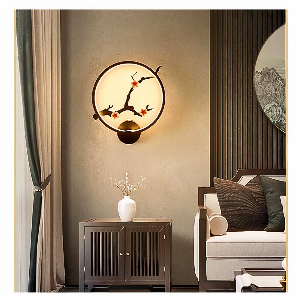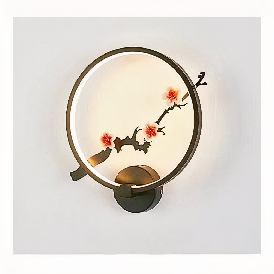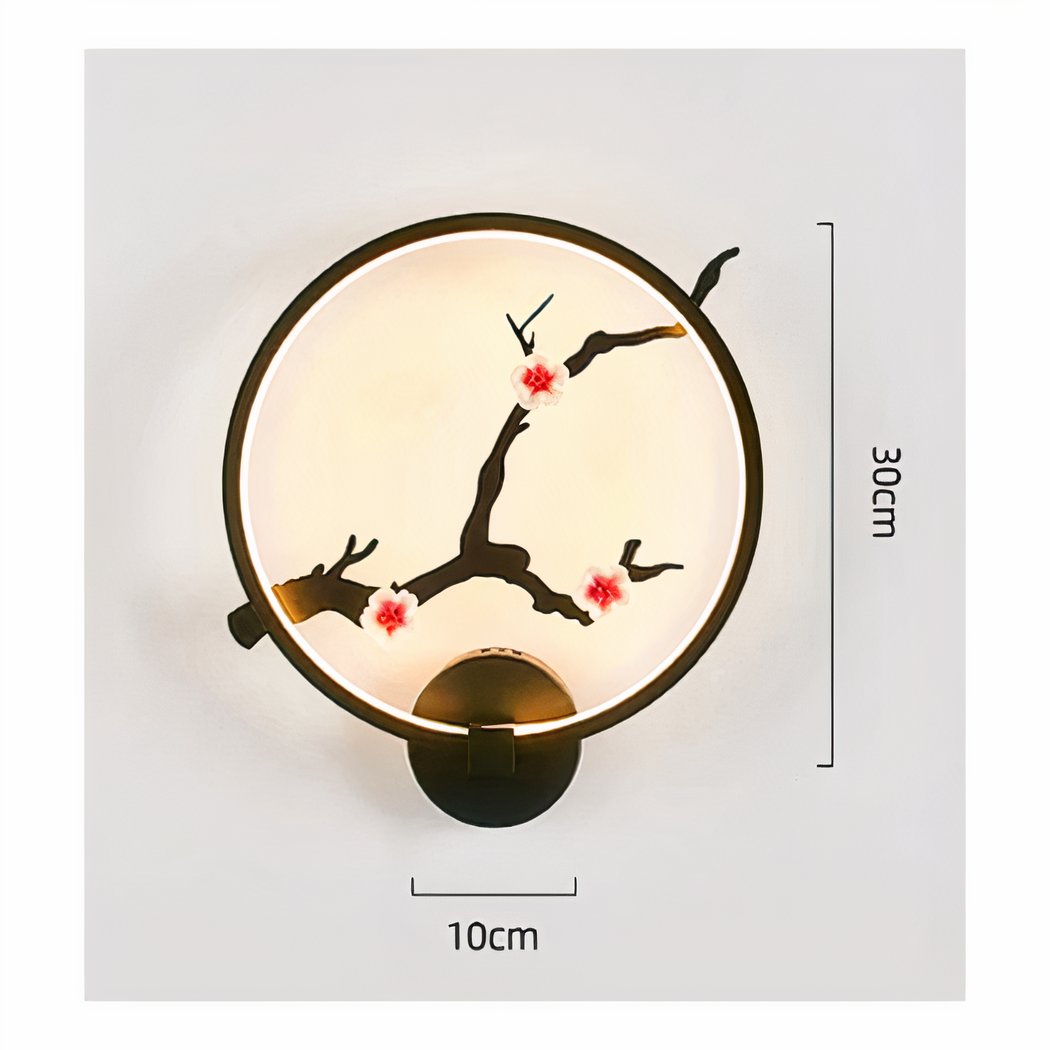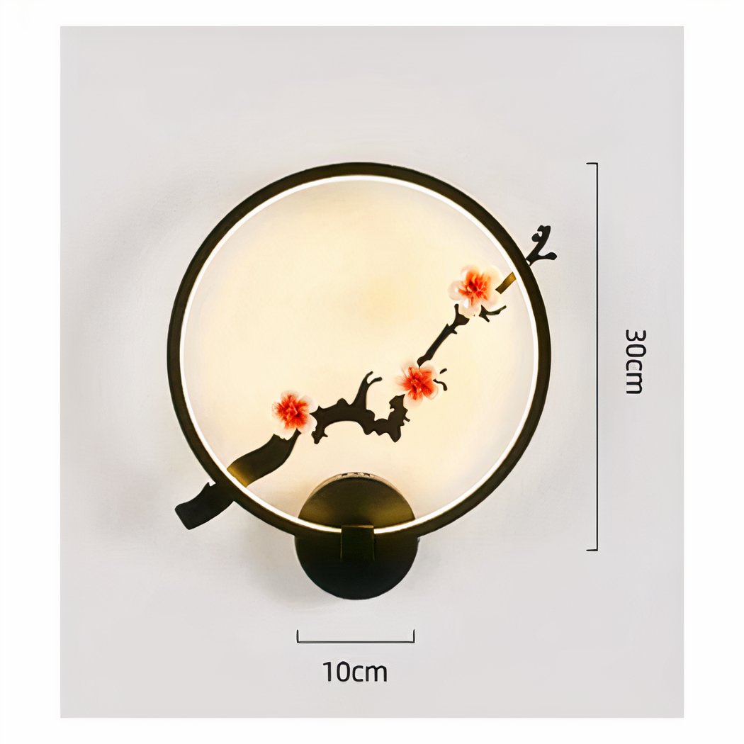 Onze ronde wandlamp past perfect in de moderne Japanse stijl, dankzij het minimalistische ontwerp versierd met delicate sakura takken en hun roze bloemen. Dit stuk combineert Japanse esthetiek met een iconisch natuurlijk motief dat de vluchtige schoonheid en delicatesse van kersenbloesem oproept.