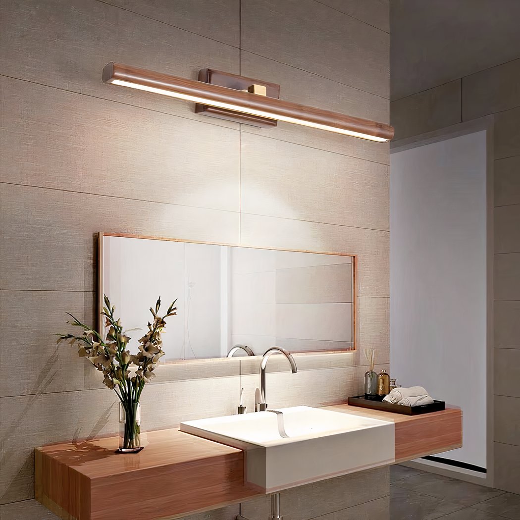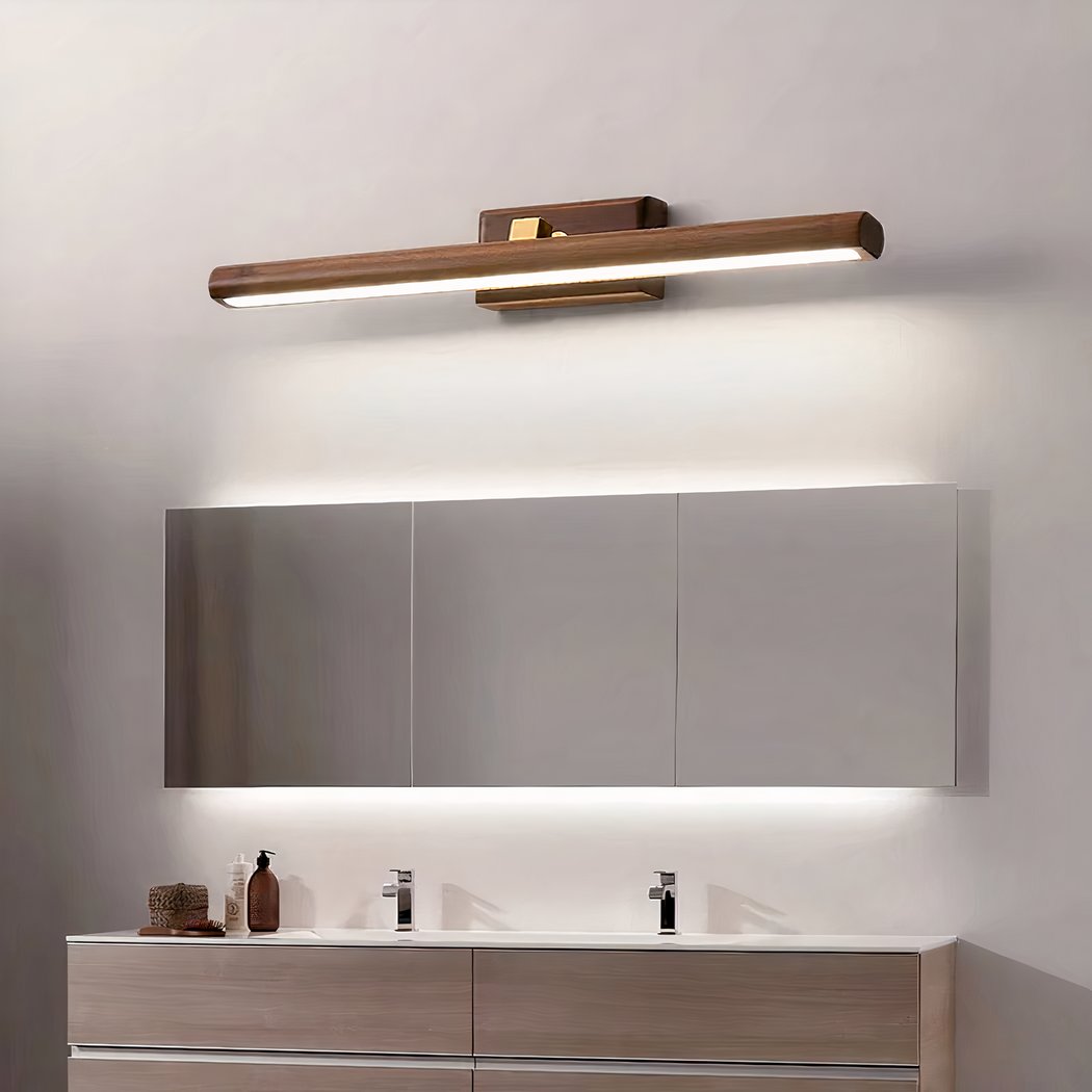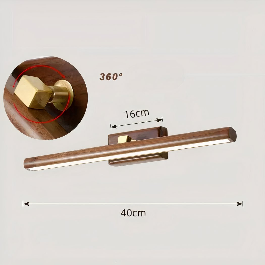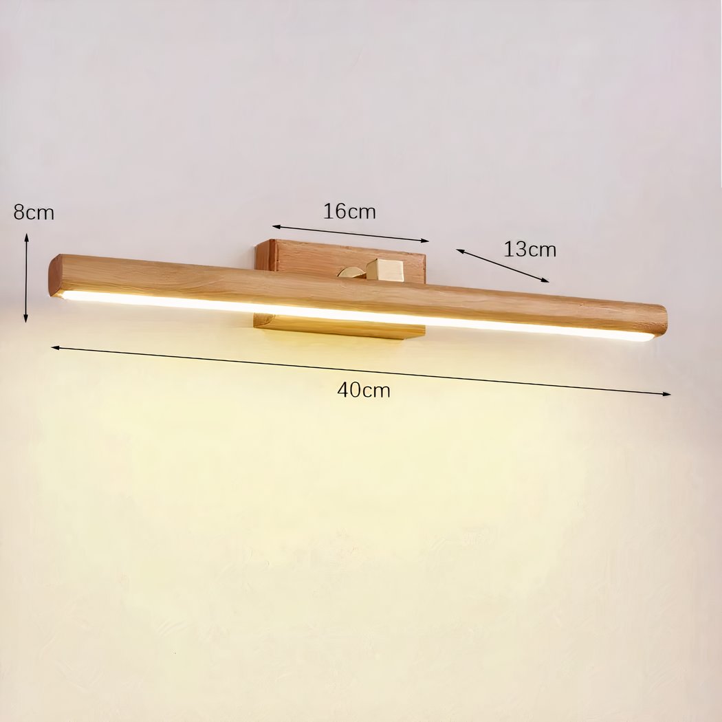 Met een breedte van 40 cm en een modern rechthoekig ontwerp biedt deze houten spiegelwandlamp een originele en praktische look. Hij is gemaakt van massief hout en staat garant voor duurzame kwaliteit en eenvoudig onderhoud.