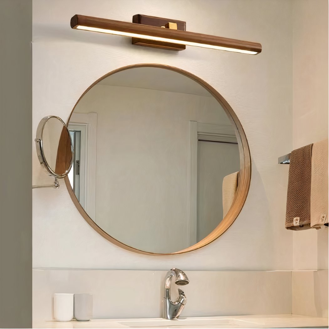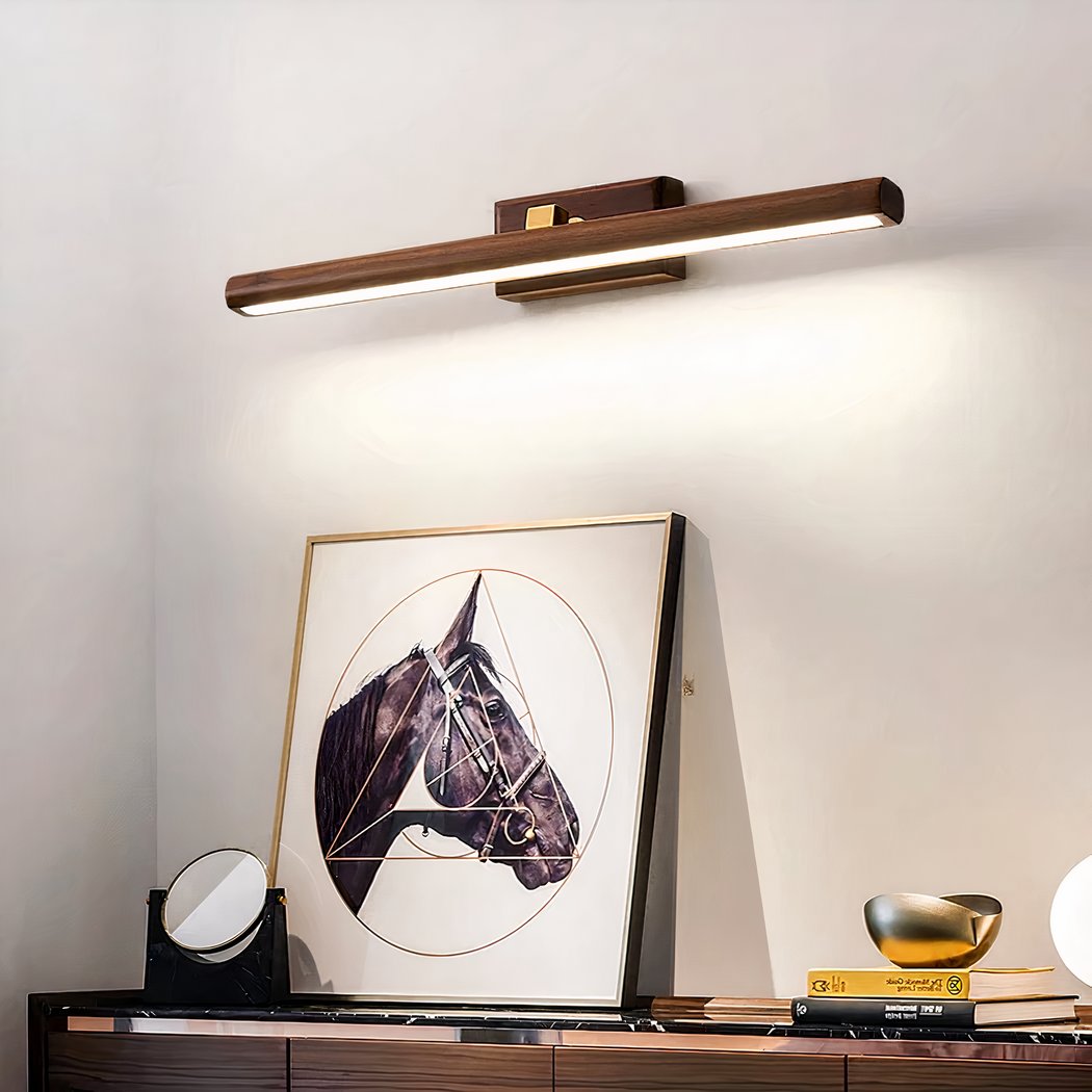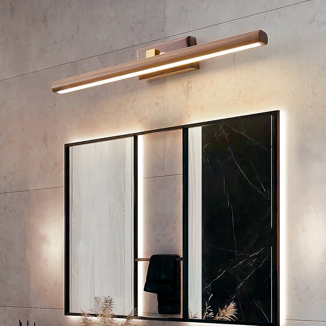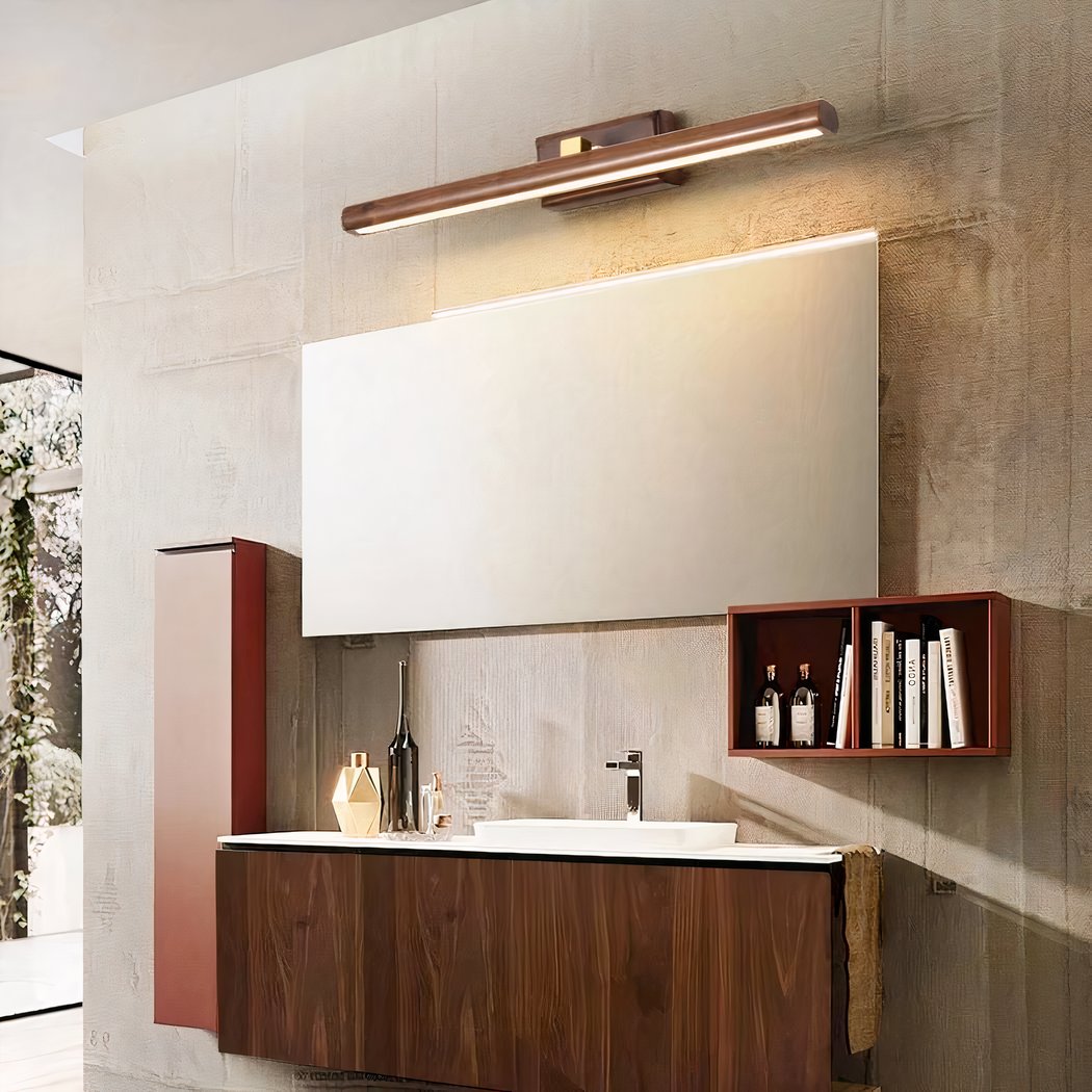 Met een breedte van 40 cm en een modern rechthoekig ontwerp biedt deze houten spiegelwandlamp een originele en praktische look. Hij is gemaakt van massief hout en staat garant voor duurzame kwaliteit en eenvoudig onderhoud.