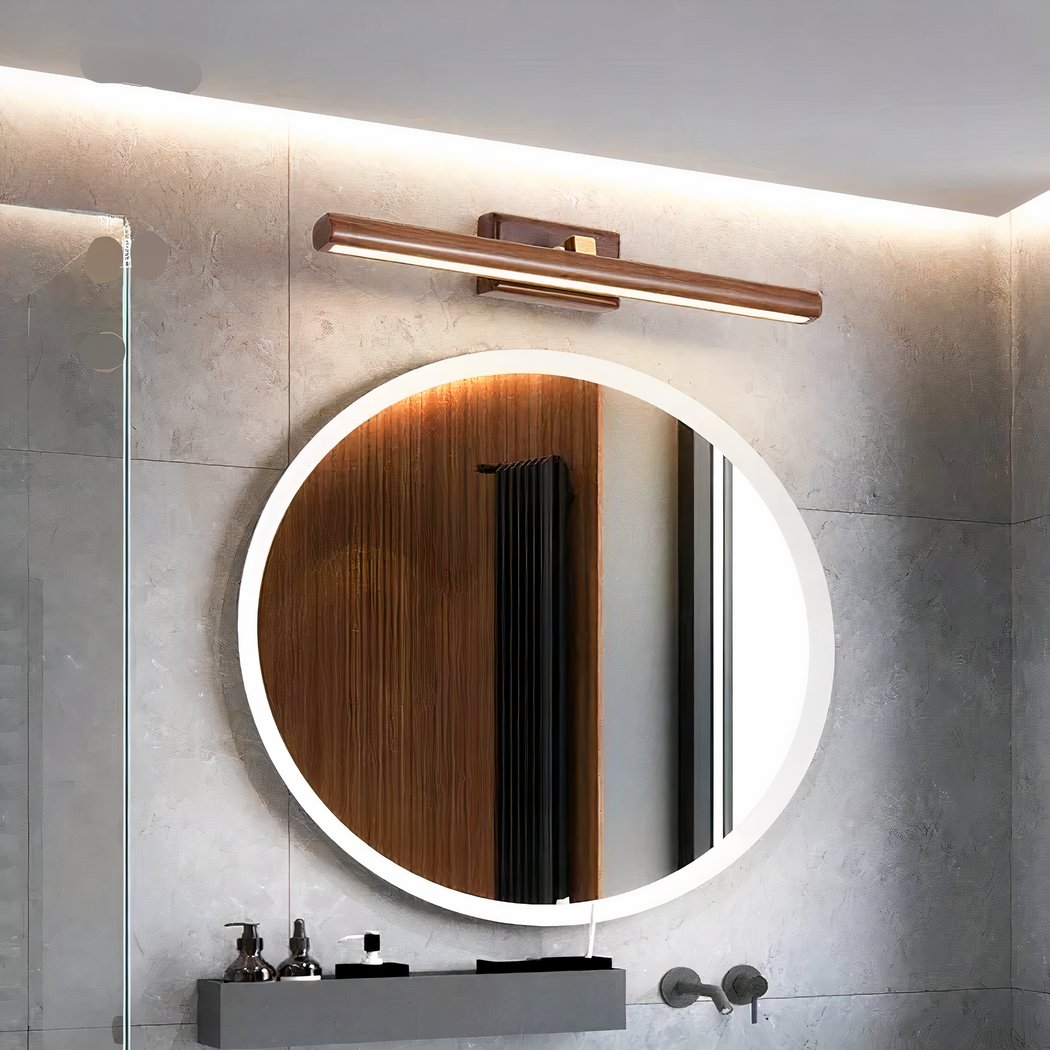 Met haar elegante design en praktische functies brengt deze roterende wandlamp in spiegelhout een vleugje originaliteit in je badkamer, keuken of kleedkamer.