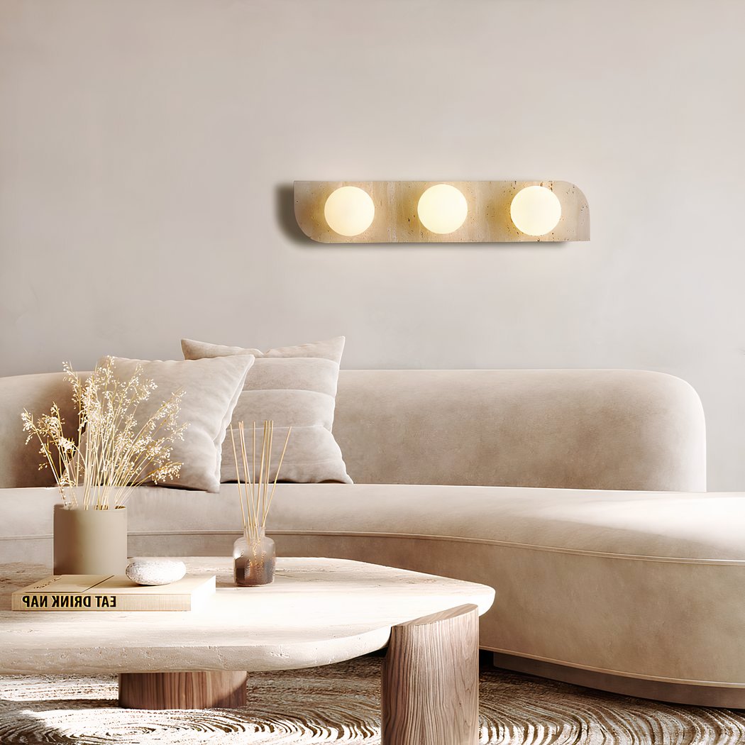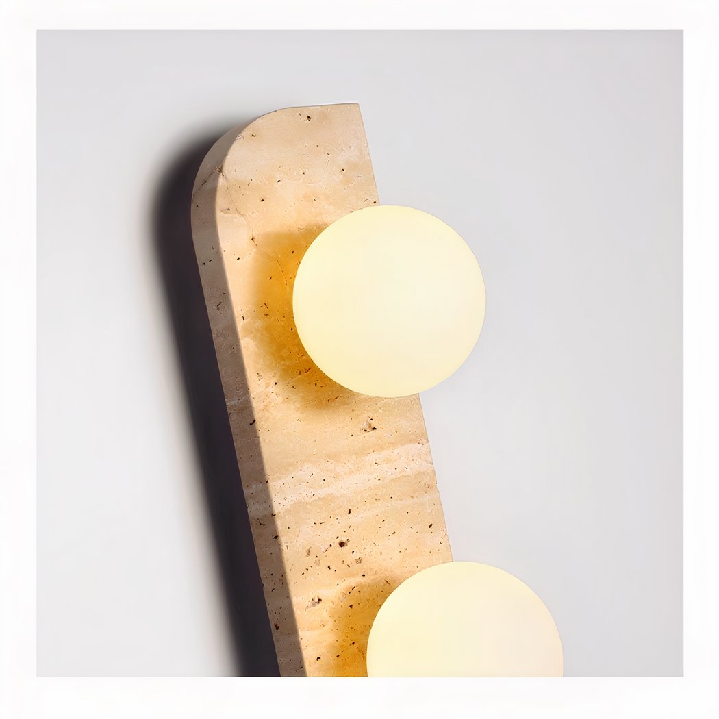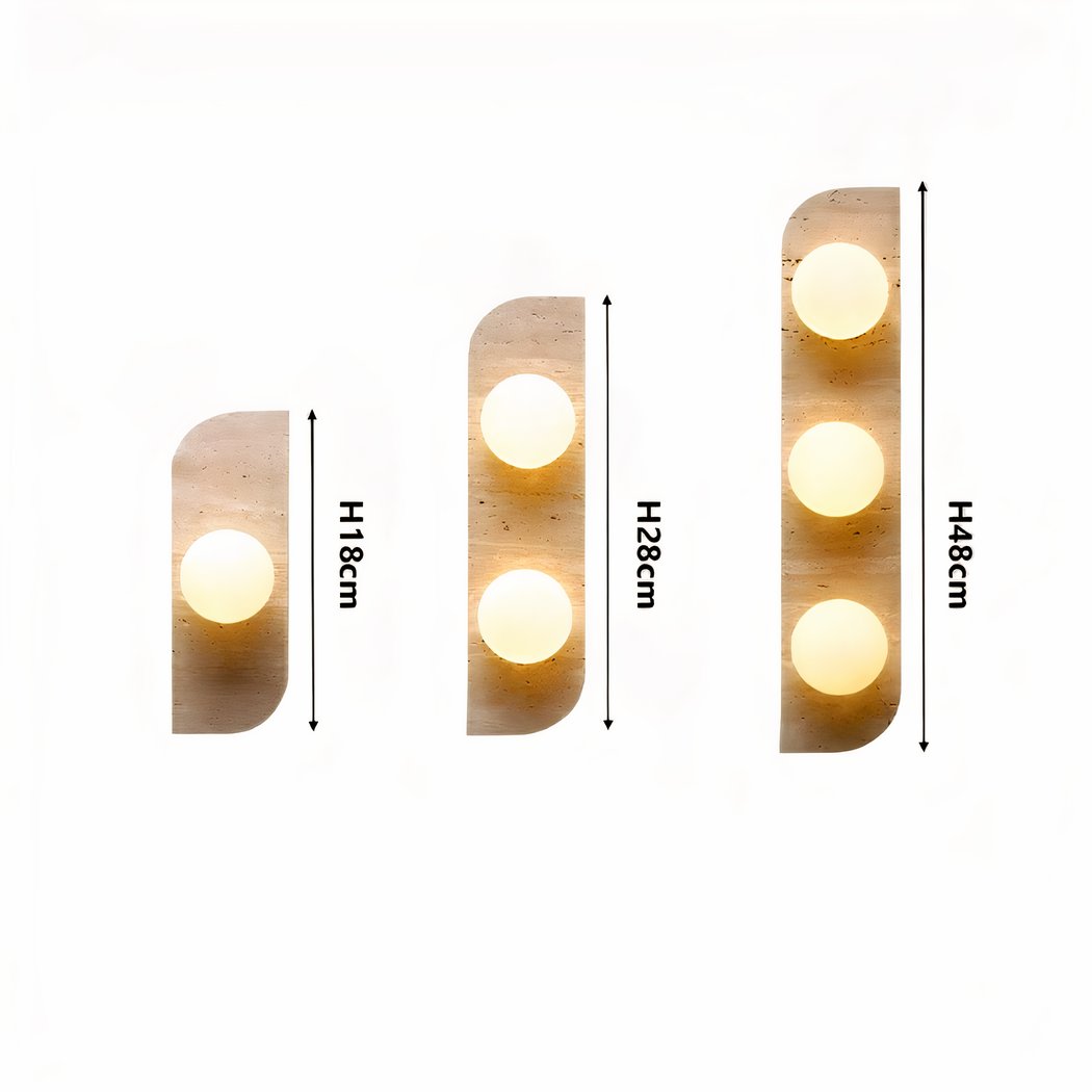 Deze wandlamp is verkrijgbaar in drie verschillende lengtes en wordt uitgerust met 1 tot 3 lichtgevende ballen, afhankelijk van de gekozen maat. Deze lichtgevende ballen verspreiden een zacht, aangenaam licht, ideaal om een intieme sfeer in je kamer te creëren.