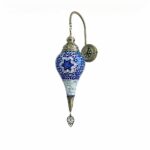 Stap terug in de tijd met onze oriëntaalse wandlamp met bloemen, een waar kunstwerk dat de essentie van ouderwetse schoonheid weergeeft. De prachtig verweerde metalen voet en beugel roepen een vervlogen tijdperk op, terwijl de druppelvormige kap, omringd door zorgvuldig aangebrachte bloemenmozaïeken, een uniek en betoverend effect biedt.