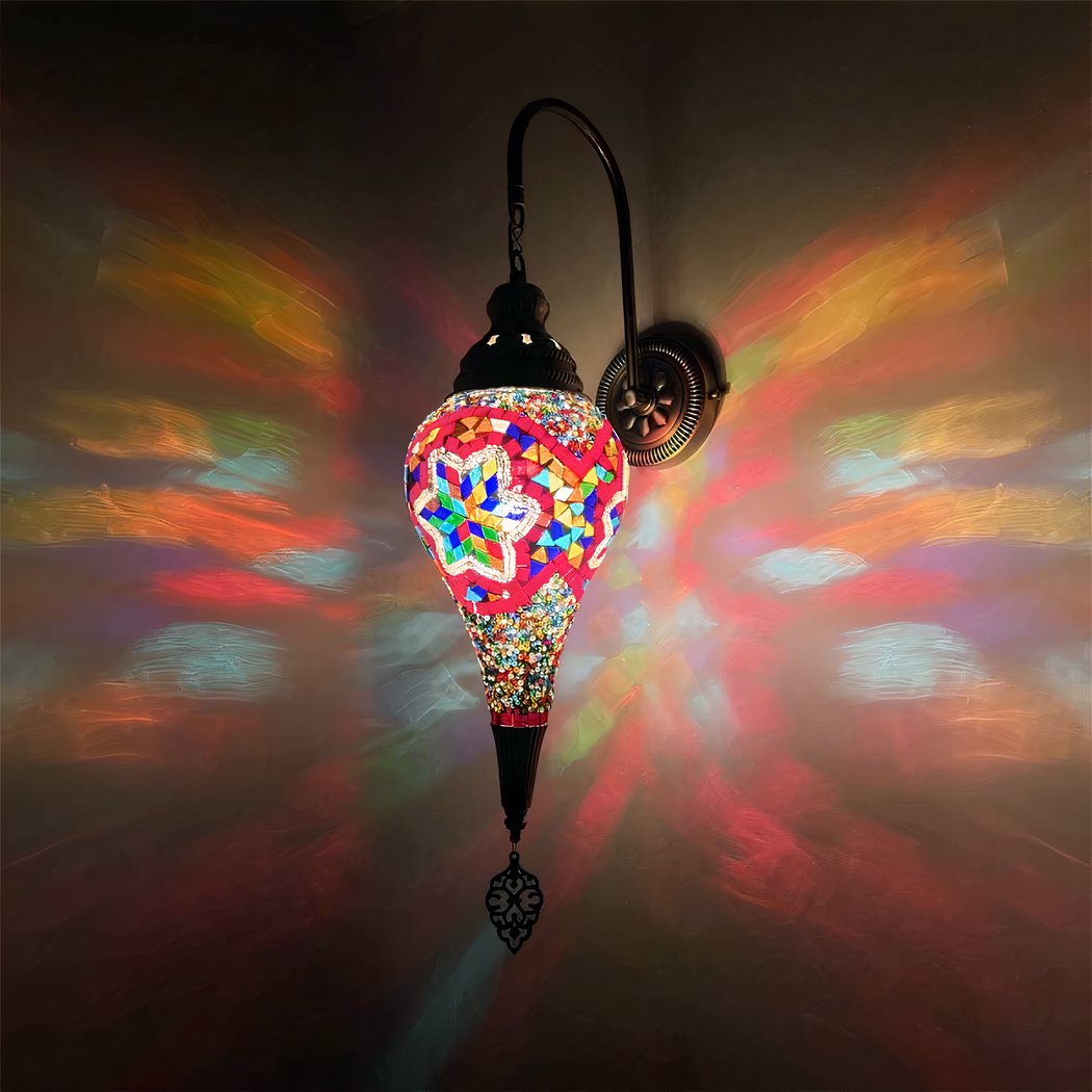 Dompel jezelf onder in een cocon van zachtheid met onze verfijnde oosterse wandlamp. Het zachte licht is ontworpen om je een warme sfeer te geven en creëert een ontspannen sfeer, perfect om tot rust te komen voordat je gaat slapen.