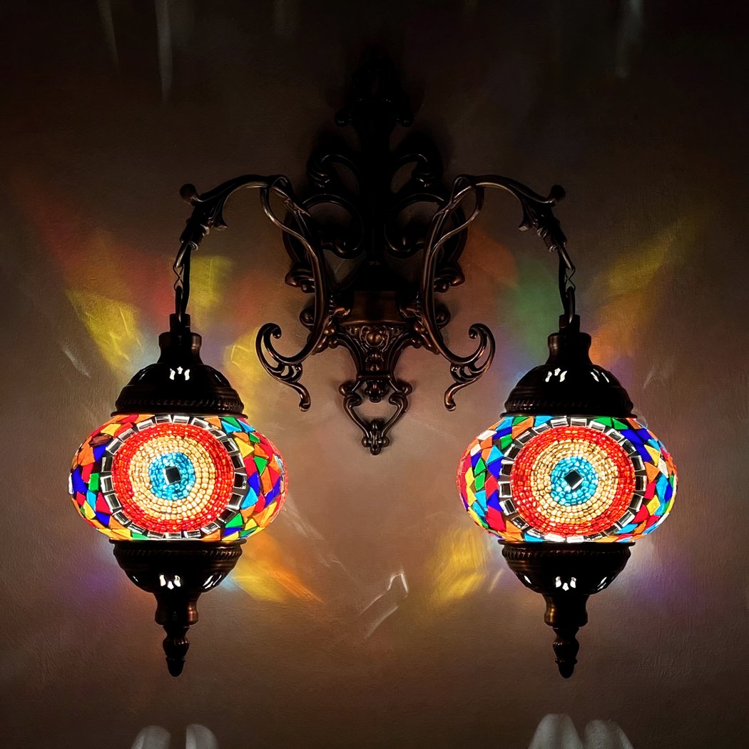 Trakteer jezelf op een buitengewone verlichtingservaring met onze nieuwe serie wandlampen met dubbele kop. De perfecte mix van traditie en moderniteit, elk model is een kunstwerk dat je ruimte verlicht met sublieme kleuren en betoverende patronen. Deze lampen zijn verkrijgbaar in vier variaties en creëren een magische sfeer, perfect om ontspannen te lezen of te chillen met vrienden.
