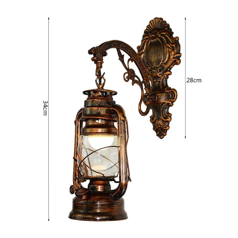 De vintage wandlamp die lijkt op een hangende lantaarn is een uniek stuk dat een vleugje charme in je ruimte brengt. Het ontwerp is geïnspireerd op vintage lantaarns, met subtiele details en lijsten in de beugel die een verfijnd tintje geven.