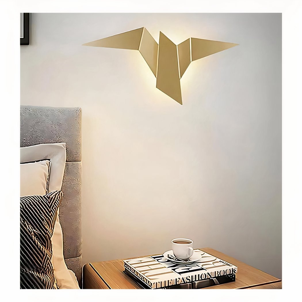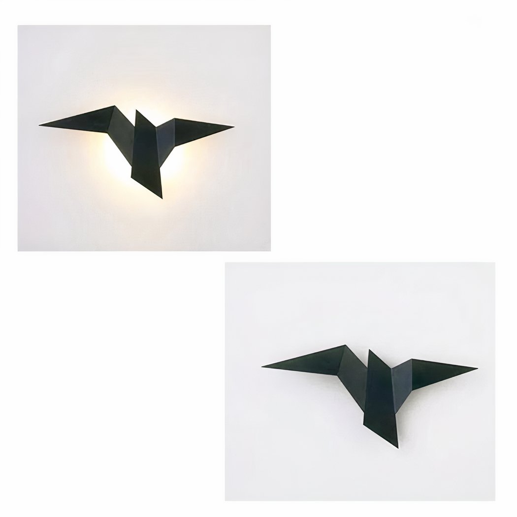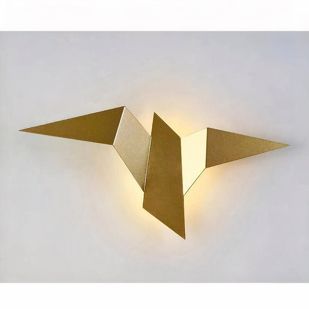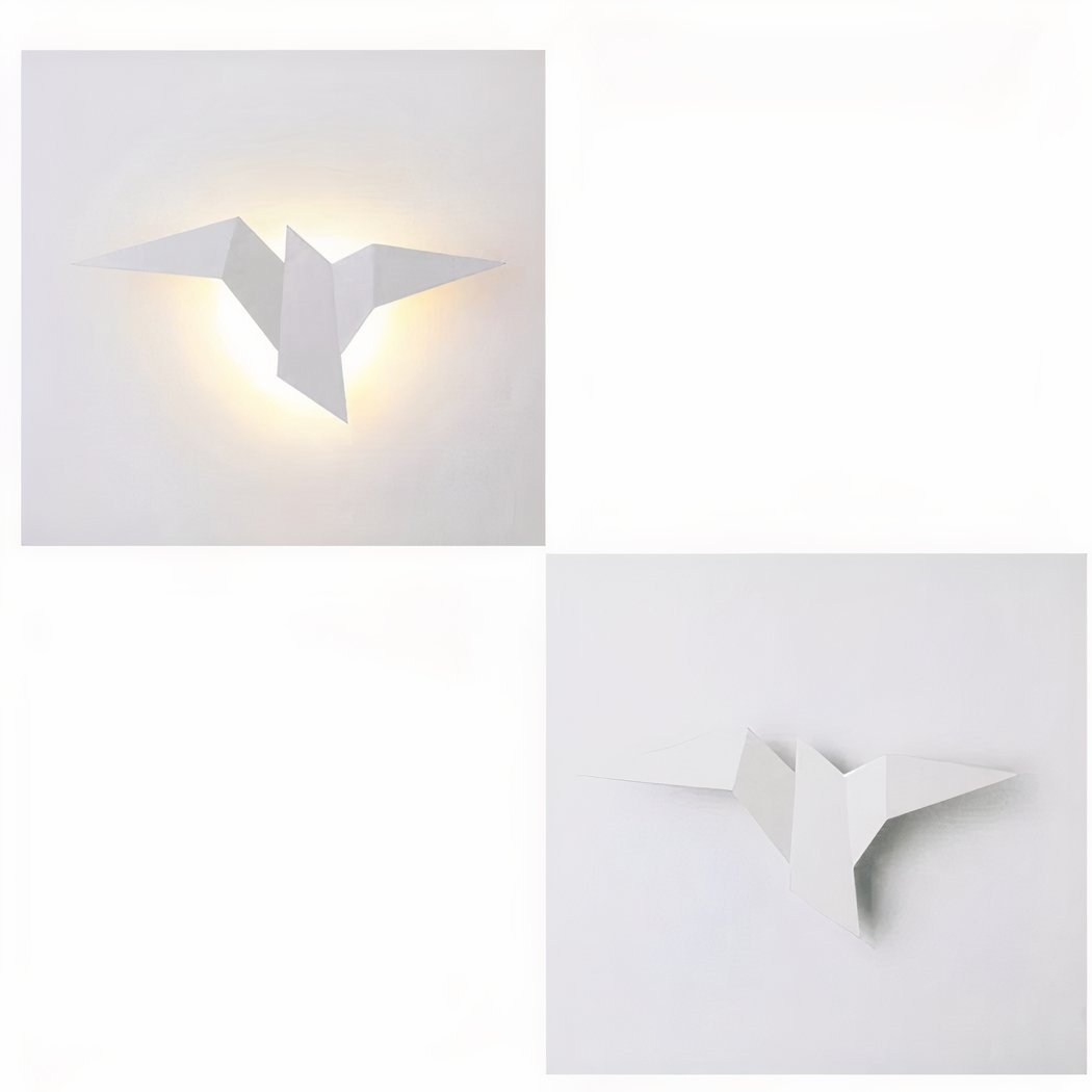 Onze metalen wandlamp, met haar fascinerende origami vogelontwerp, brengt een vleugje originaliteit en lichtheid in je huis. Geïnspireerd door de delicate kunst van het papiervouwen, is deze lamp ontworpen om op een vogel in de vlucht te lijken en een element van beweging en poëzie aan je inrichting toe te voegen.