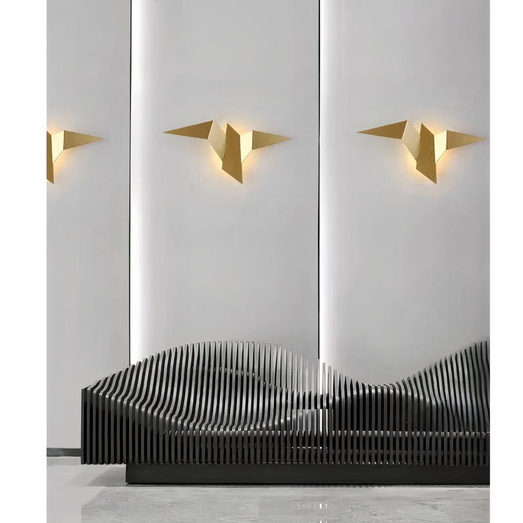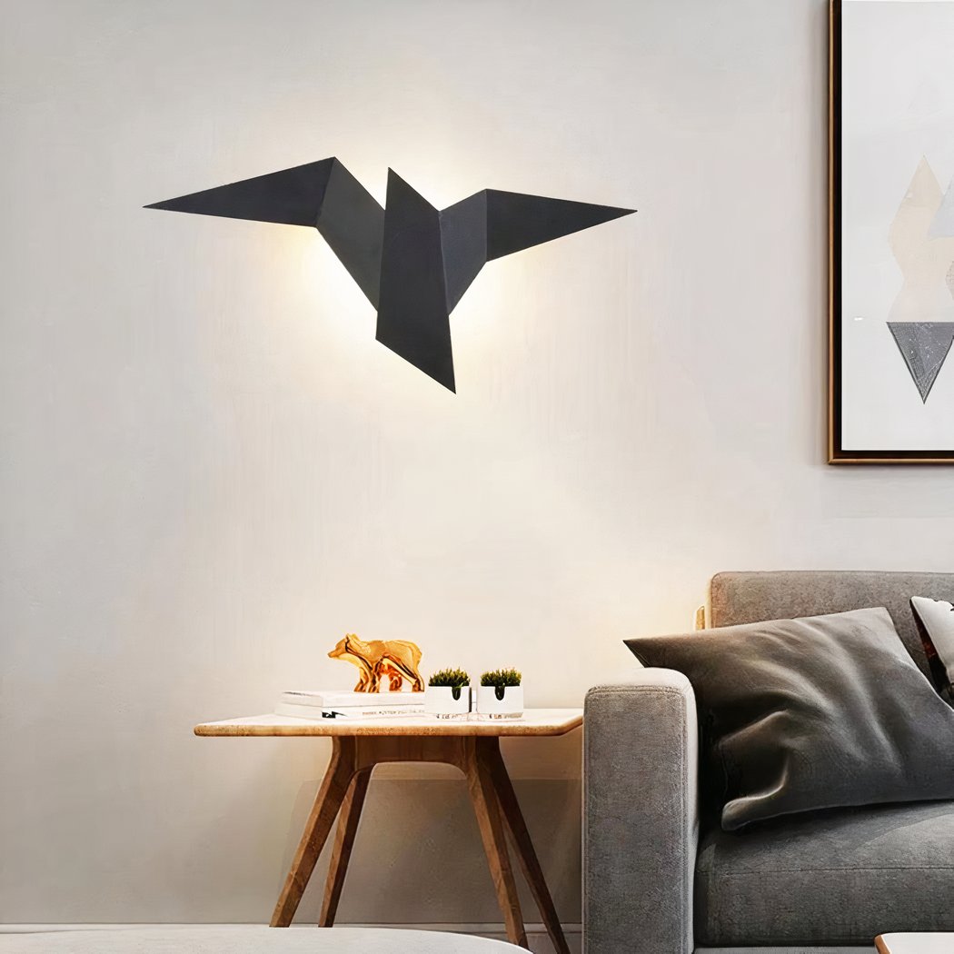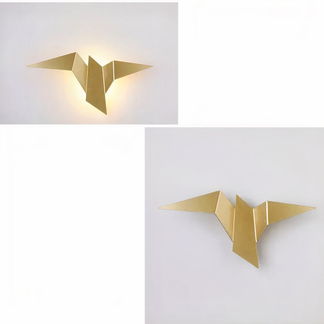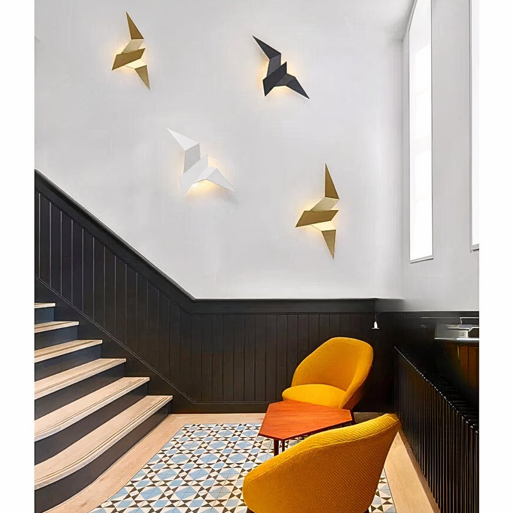 Onze metalen wandlamp, met haar fascinerende origami vogelontwerp, brengt een vleugje originaliteit en lichtheid in je huis. Geïnspireerd door de delicate kunst van het papiervouwen, is deze lamp ontworpen om op een vogel in de vlucht te lijken en een element van beweging en poëzie aan je inrichting toe te voegen.