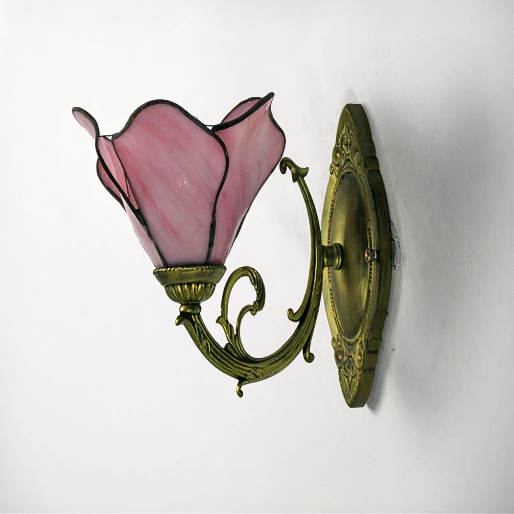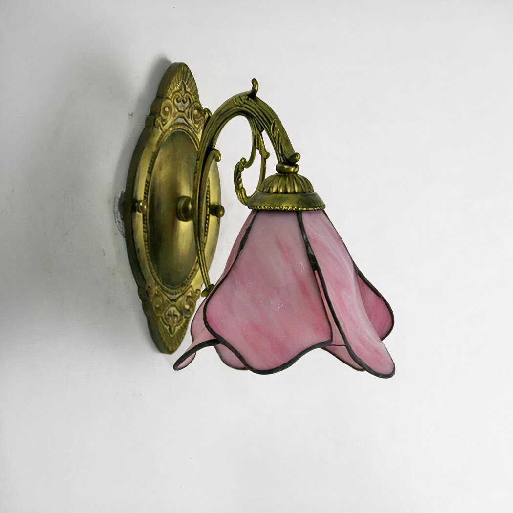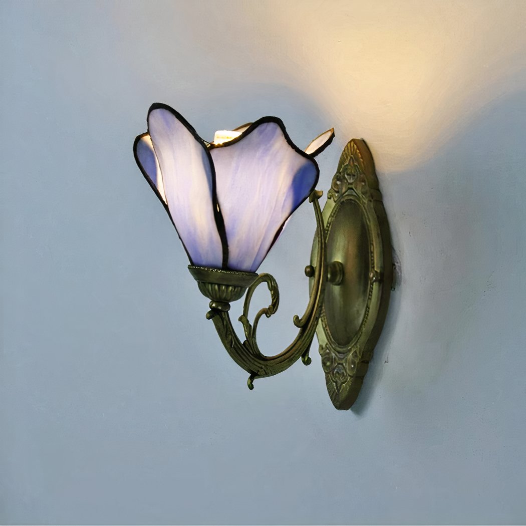 Tover je huis om in een tuin vol verrukkingen met onze op Tiffany geïnspireerde wandlamp in de vorm van een bloem. De delicaat geciseleerde glazen bloemblaadjes roepen de vluchtige schoonheid op van bloemen in volle bloei.
