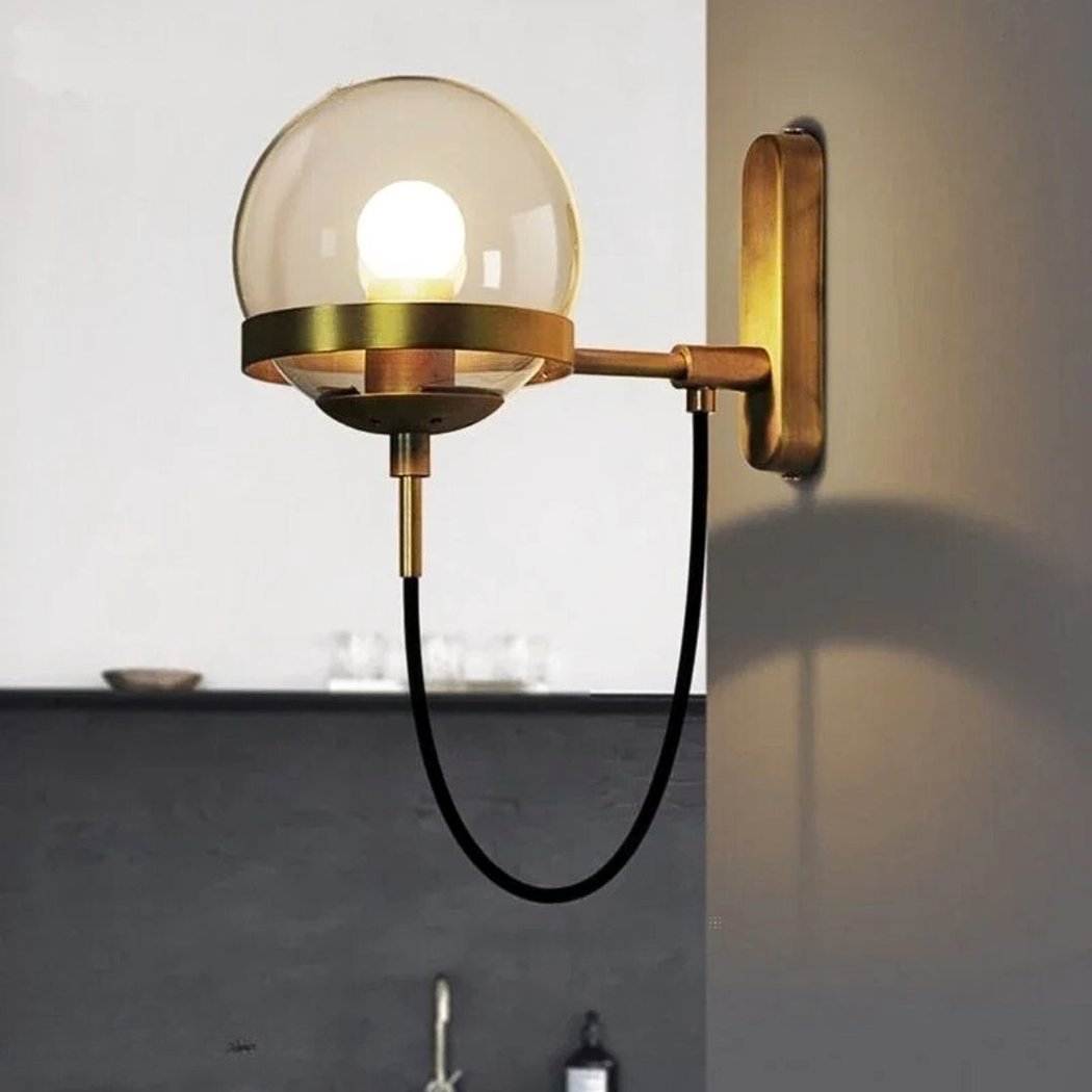 Keukenwandlamp in de vorm van een glazen bol
