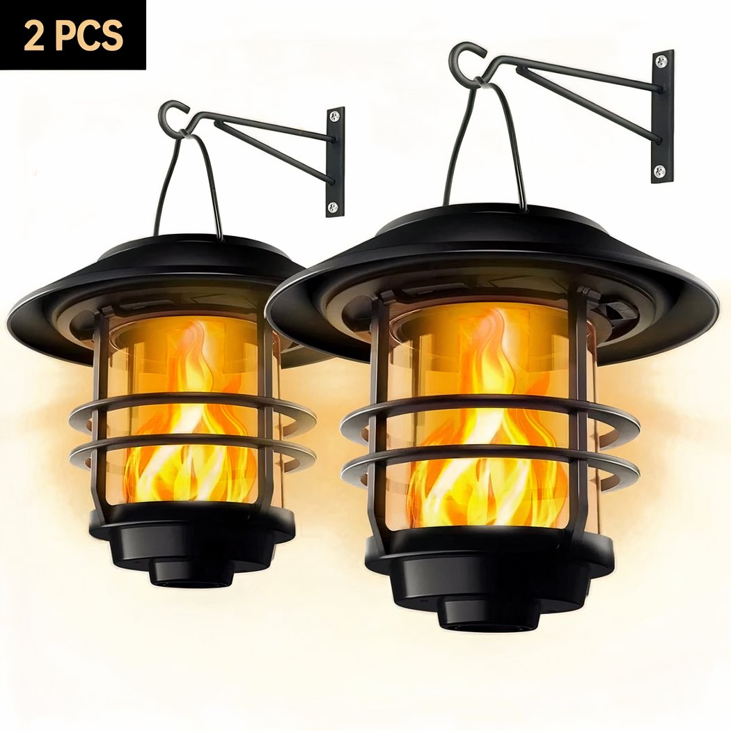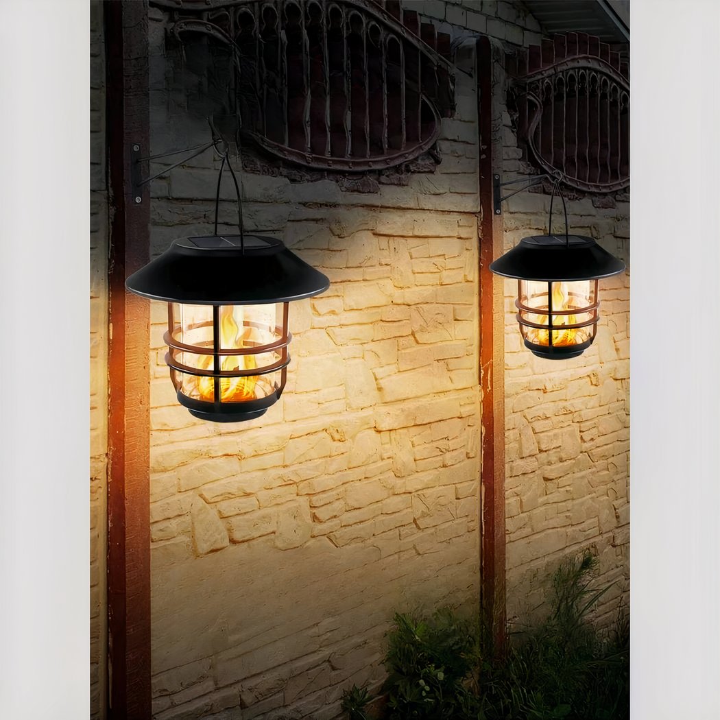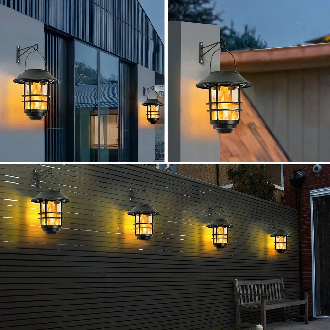 Set van twee wandlampen met flikkerende vlam op zonne-energie