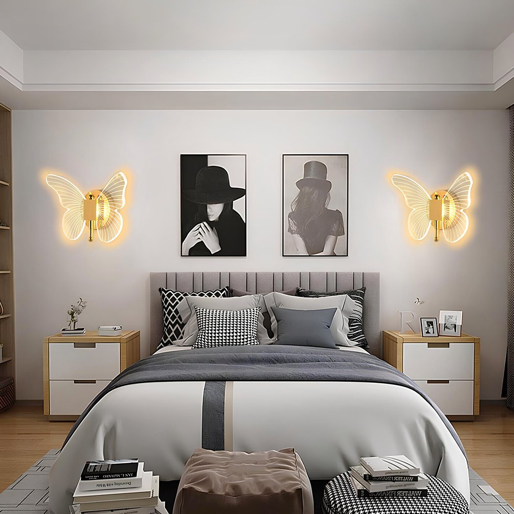 Deze verrukkelijke wandlamp voor de slaapkamer heeft de delicate vorm van een vlinder, wat zorgt voor een charmante speelsheid en doet denken aan de lichtheid van dit luchtige schepsel. Het boeiende ontwerp creëert een speelse en aangename sfeer, perfect voor een betoverende toets in de slaapkamerinrichting.