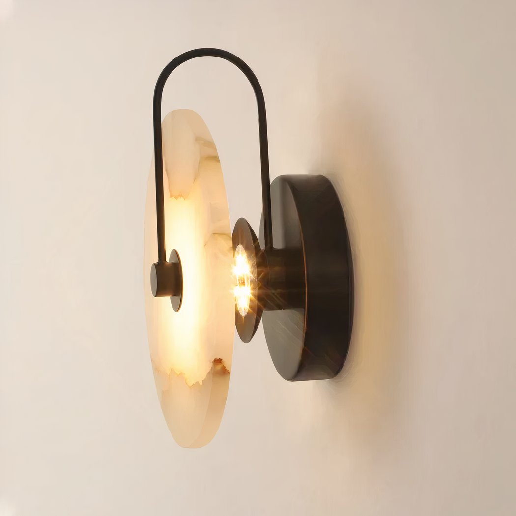 Deze wandlamp met zijn marmeren wiel is een vintage ontwerp dat de frisheid van marmer combineert met de warmte van licht. Marmer, met zijn natuurlijke uitstraling en unieke textuur, vormt een opvallend contrast met de moderniteit van LED-technologie.