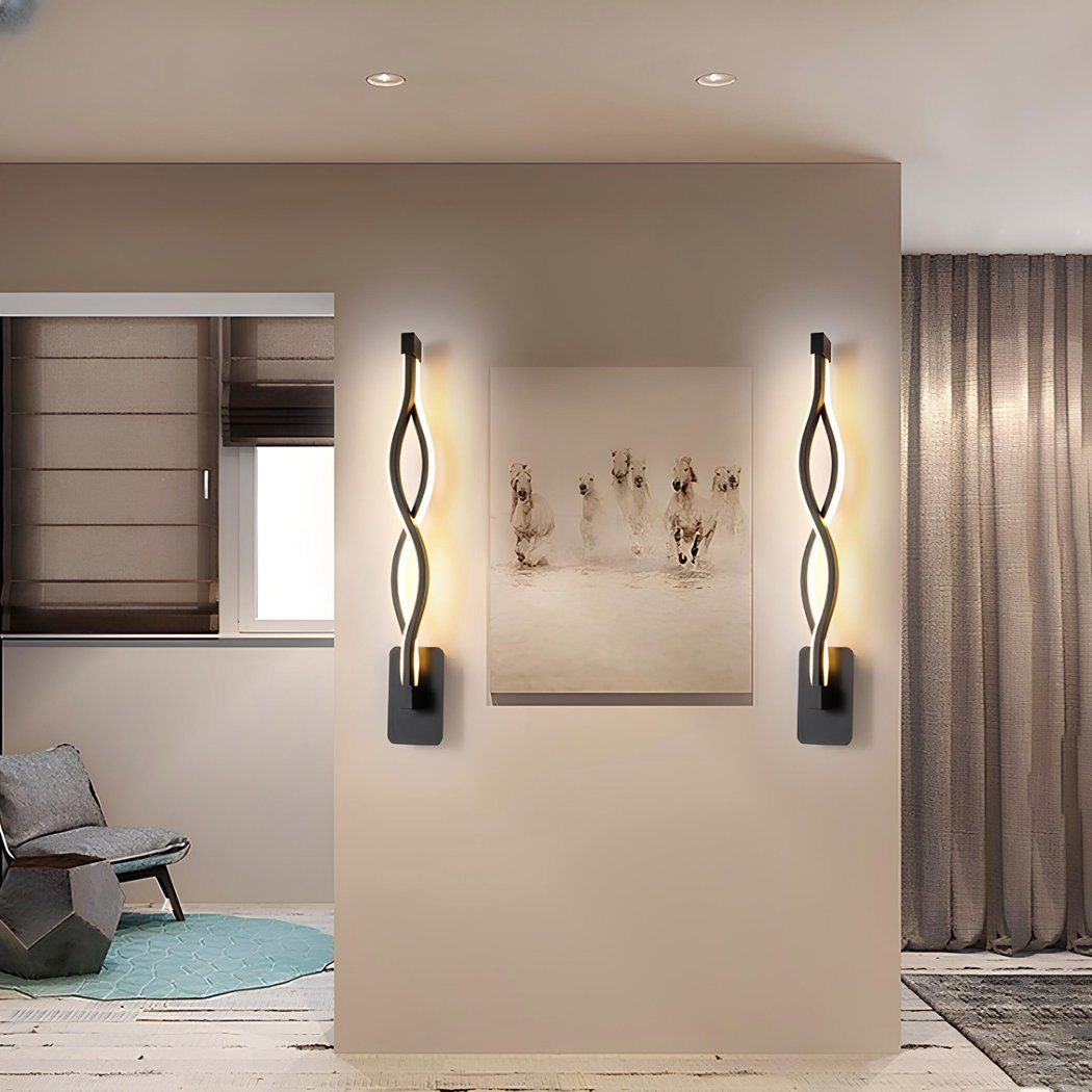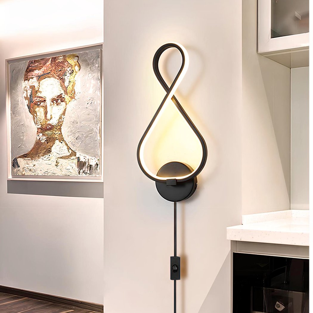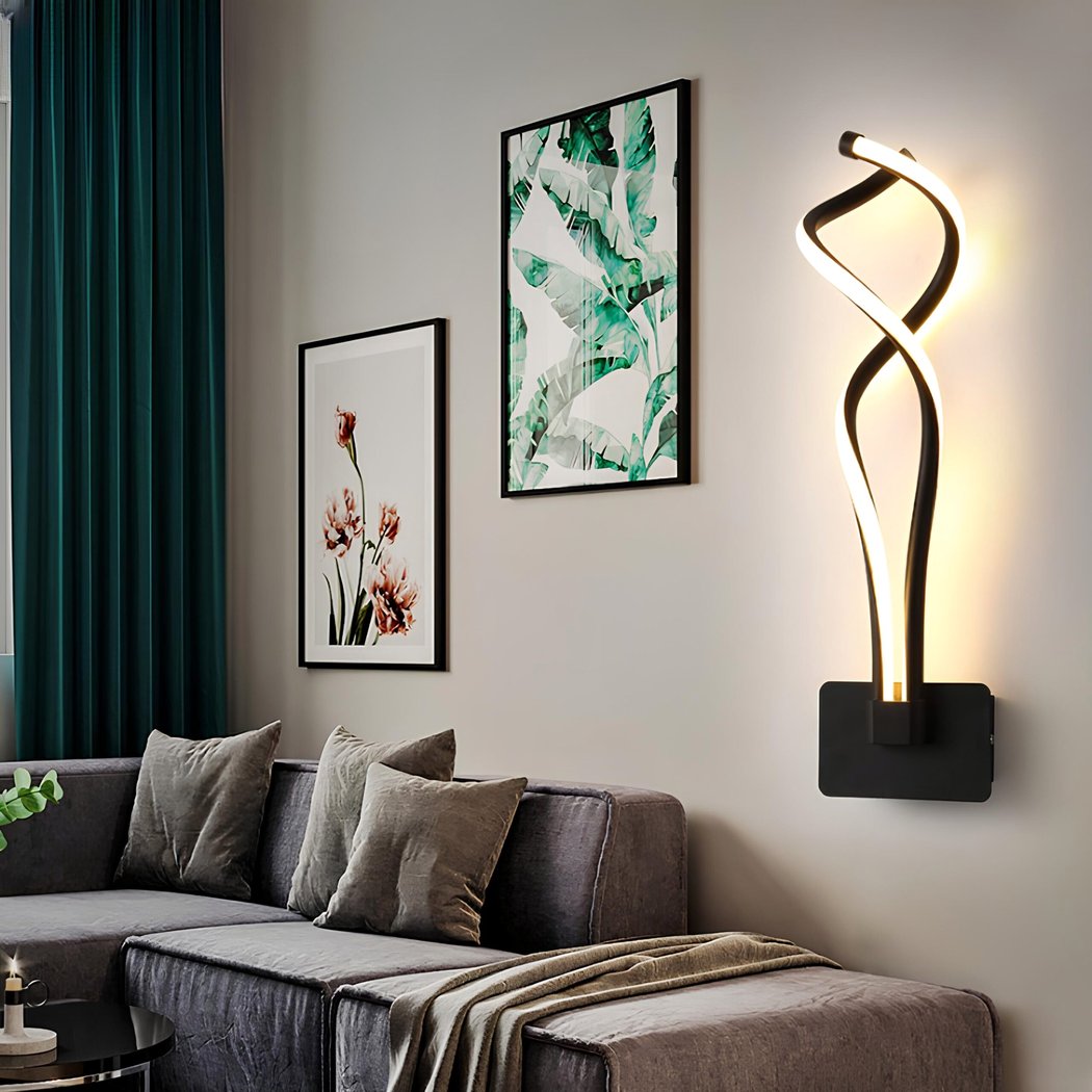 Deze wandlamp in de woonkamer biedt een opvallend modern zwart abstract ontwerp, gekenmerkt door elegante en harmonieuze rondingen. De afgeronde lijnen creëren een boeiend visueel effect en voegen een artistieke dimensie toe aan de hedendaagse esthetiek.