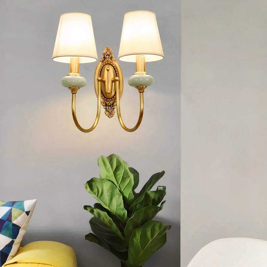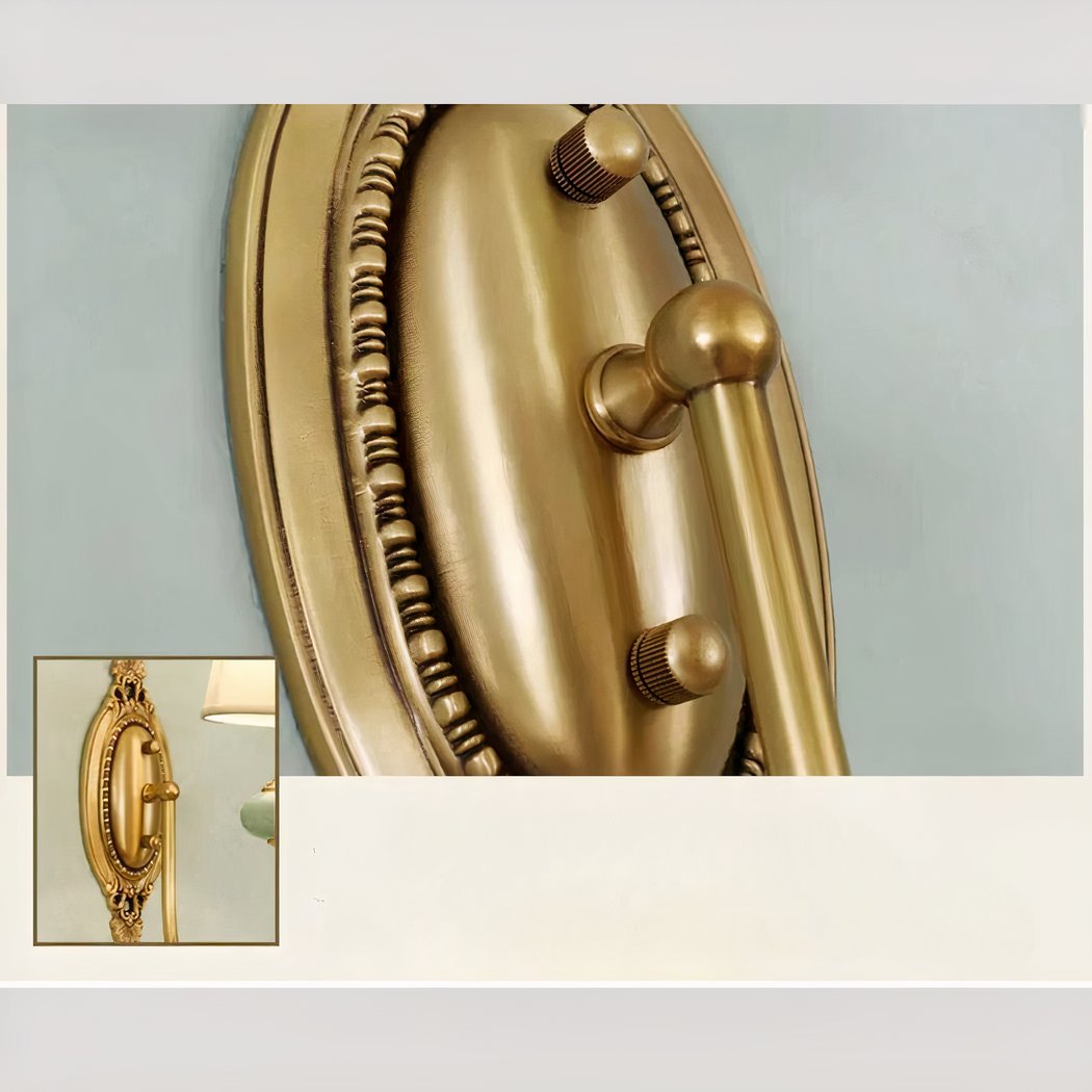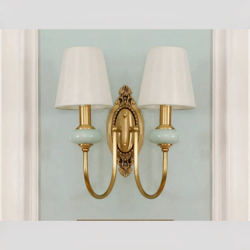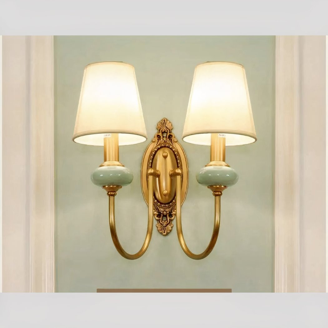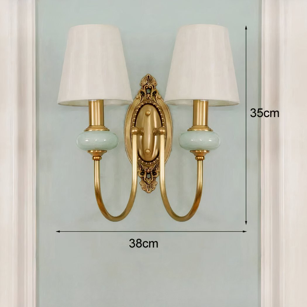Dompel jezelf onder in tijdloze elegantie met onze vintage wandlamp met zijn amandelgroene keramische bal in het midden. Ontworpen om de weelde van de Rococostijl op te roepen, neemt dit majestueuze stuk, versierd met koperen details in smeedijzerstijl, je mee naar een tijdperk van grandeur en verfijning.